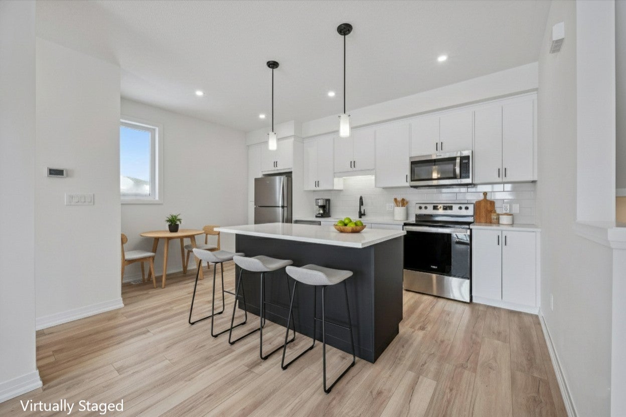 Welcome to the Bobby — a spacious Two-Over-Two Stacked Condo Townhome in the vibrant Erinbrook Towns community in Kitchener! This thoughtfully designed pre-construction home offers 2 bedrooms, 1.5 bathrooms, and a dedicated parking space. The ground floor features a bright open-concept living room and modern kitchen, a convenient powder room, and access to a covered balcony — perfect for outdoor relaxation. Additional highlights include a covered porch entry and extra storage space. The garden level includes a spacious principal bedroom, a second bedroom, a full main bathroom, plus laundry, utility, and storage areas. Perfect for those who love a lock-and-go lifestyle — say goodbye to shoveling snow and mowing lawns, and spend more time doing what you enjoy most! Located close to shopping, restaurants, parks, and more, the Bobby combines comfort and convenience in an established, vibrant community. These ENERGY STAR® certified homes also come with an appliance package and a Bell Internet Package included in your Condo Fees.