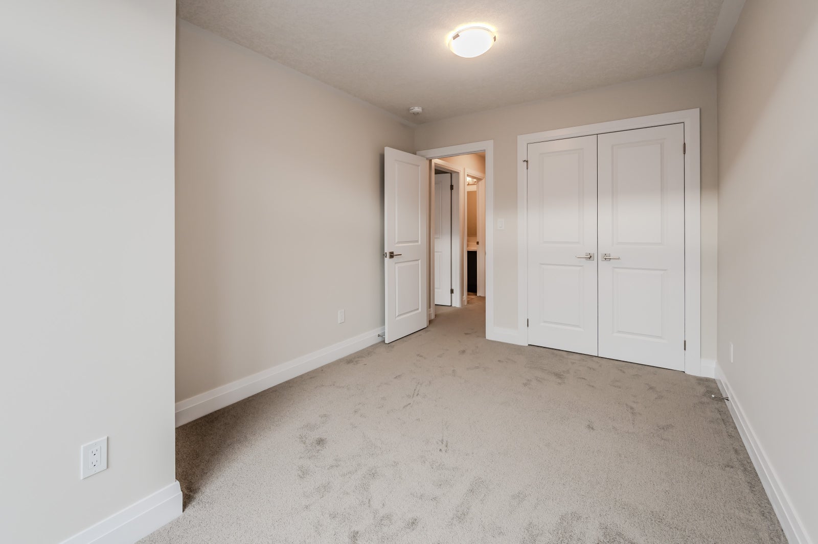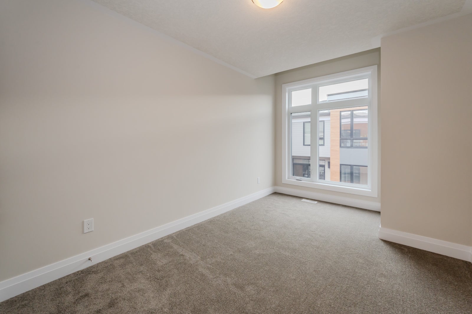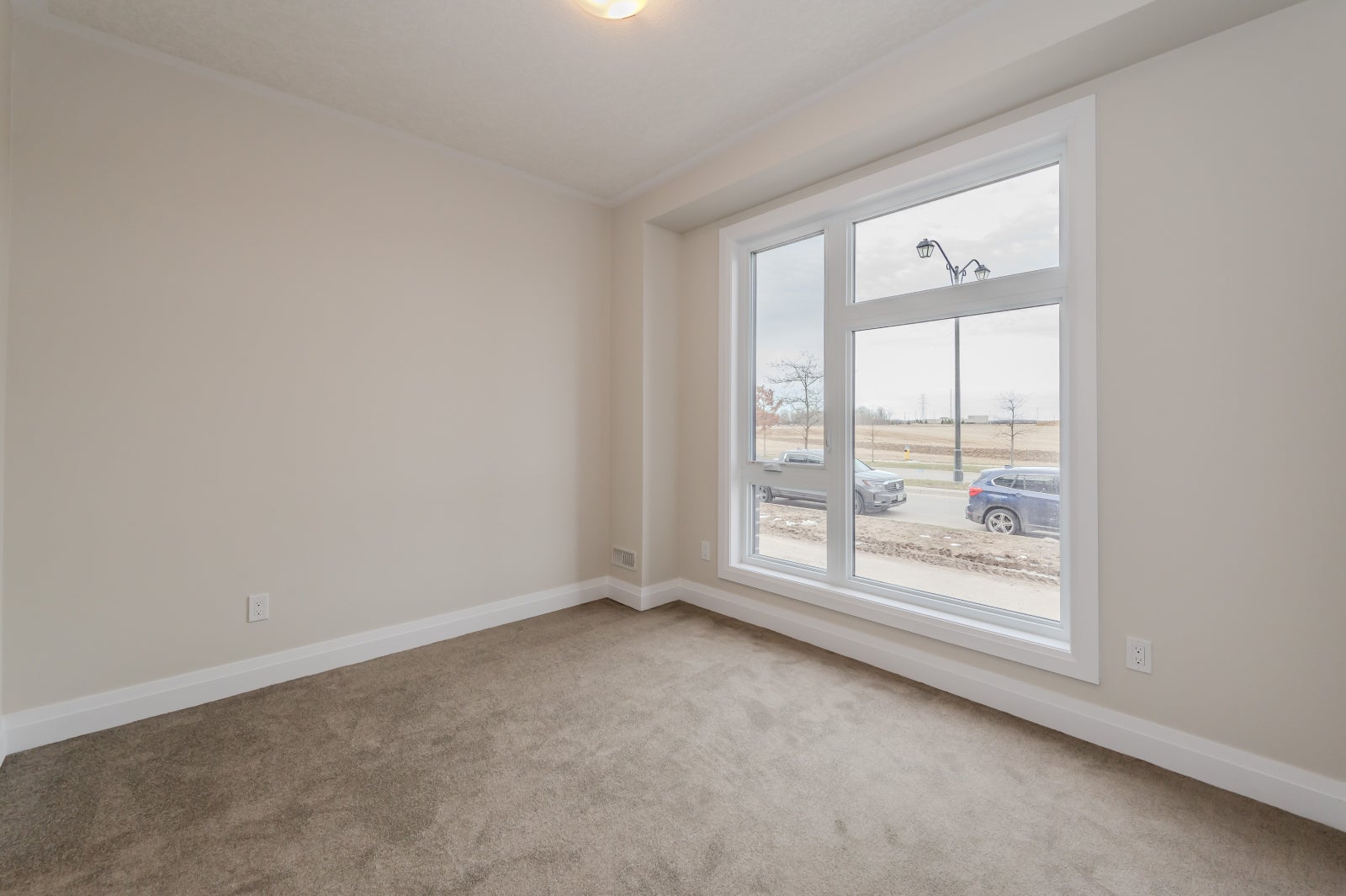 Enjoy countryside living in The Sandalwood, a 1,836 sq. ft. three-storey rear-garage Trailside Townhome. Pull up to your double-car garage located in the back of the home and step inside an open foyer with a ground-floor bedroom and three-piece bathroom. This is the perfect space for a home office or house guest! Upstairs on the second floor, you will be welcomed to an open concept kitchen and living space area with balcony access in the front and back of the home for countryside views. The third floor welcomes you to 3 bedrooms and 2 bathrooms, plus an upstairs laundry room for your convenience. The principal bedroom features a walk-in closet and an ensuite three-piece bathroom for comfortable living. Included finishes such as 9' ceilings on ground and second floors, laminate flooring throughout second floor kitchen, dinette and great room, Quartz countertops in kitchen, main bathroom, ensuite and bathroom 2, steel backed stairs, premium insulated garage door, Duradeck, aluminum and glass railing on the two balconies. Nestled into the countryside at the head of the Walter Bean Trail, the Trailside Towns blends carefree living with neighbouring natural areas. List price reflects all current incentives and promotions. MLS